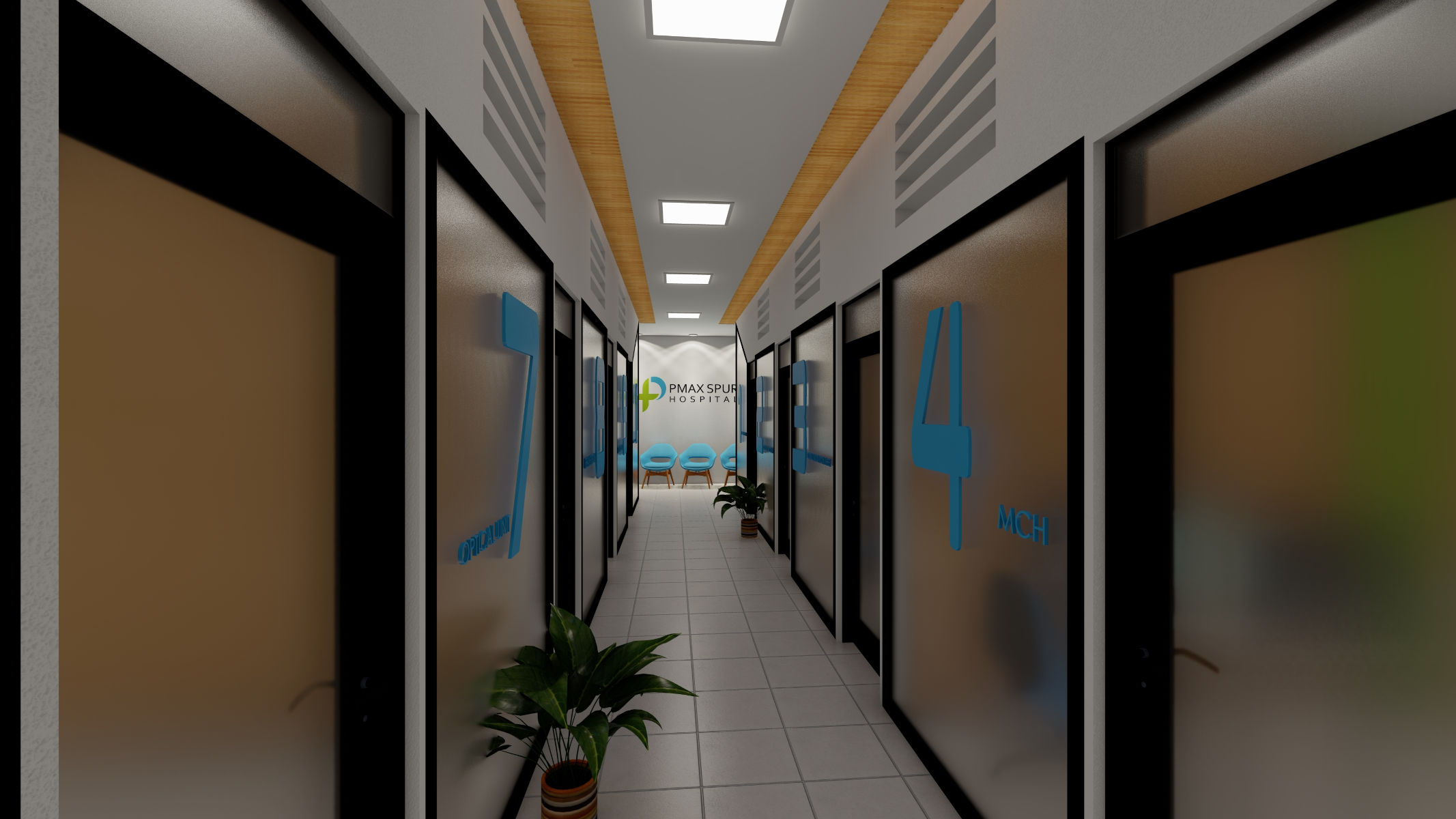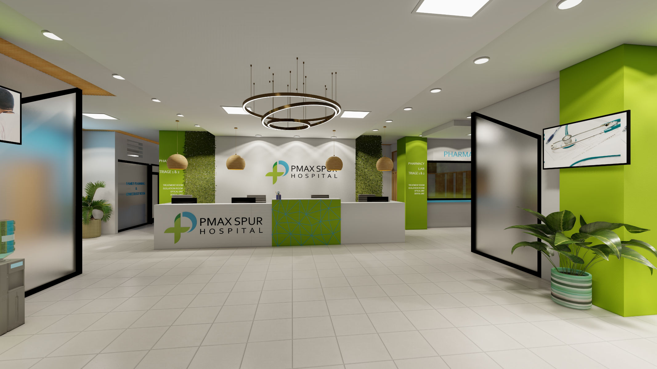 PMAX Hospital — a healthcare environment designed around the patient's experience. Intuitive wayfinding, abundant natural light, and materials chosen for hygiene, calm and durability. Clinical rigour expressed with architectural warmth.