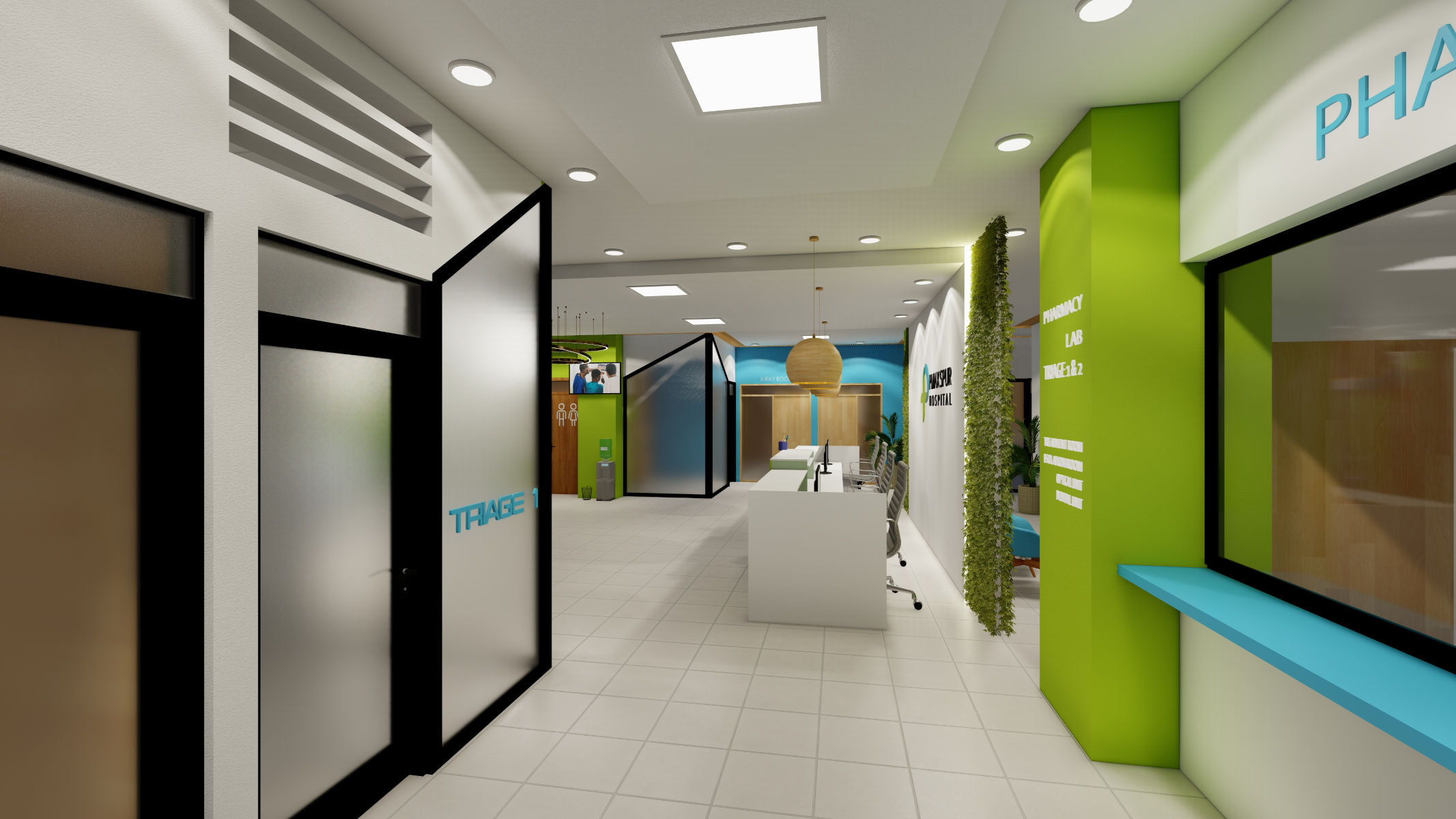 PMAX Hospital — a healthcare environment designed around the patient's experience. Intuitive wayfinding, abundant natural light, and materials chosen for hygiene, calm and durability. Clinical rigour expressed with architectural warmth.